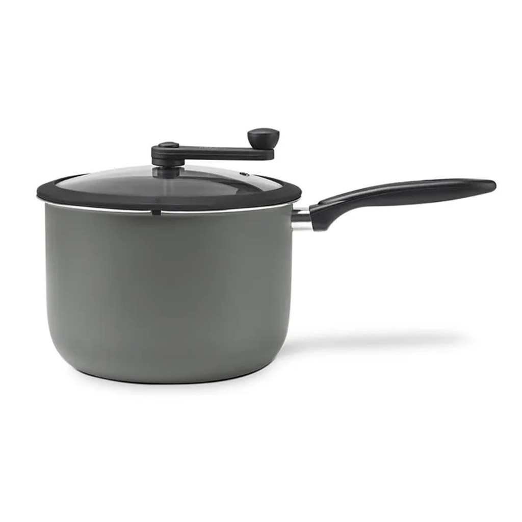 Com estrutura em alumínio, a Pipoqueira Ceramic Life Pic Poc garante o cozimento ágil dos alimentos por igual. A pintura externa é na cor cinza e a interna, na cor camurça. Seu cabo é feito em baquelite antitérmico, não esquentando e proporcionando toque confortável e ergonômico. A tampa é feita em vidro temperado com borda de silicone, saída para vapor e trava, proporcionando maior segurança durante o uso. Também apresenta misturador em nylon, que não danifica o antiaderente Mineral Resist.